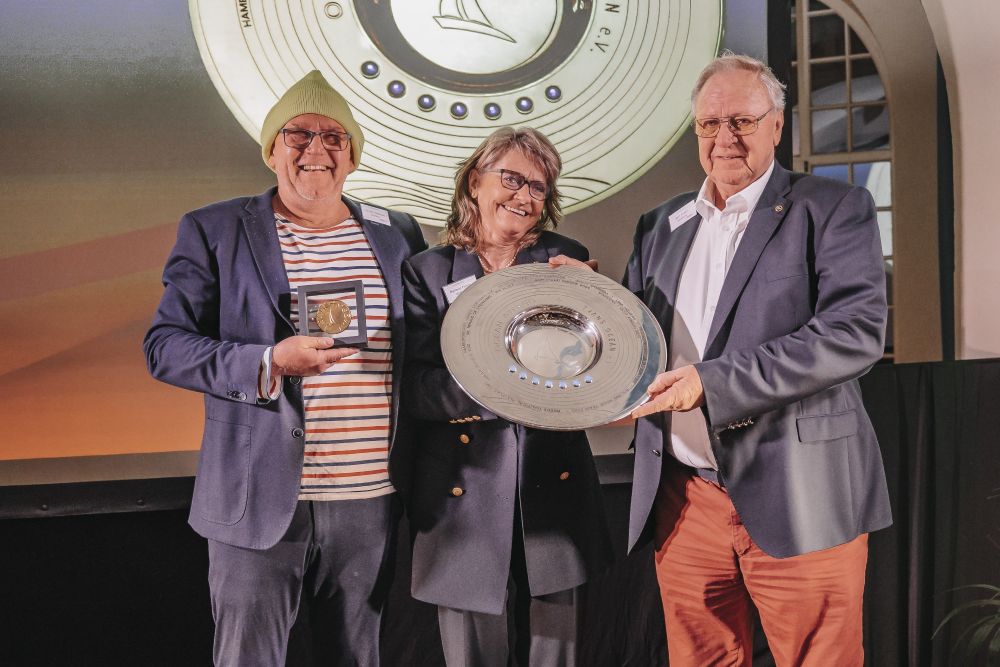 Ein weiterer Weltumseglerpreis ging an die Bremer Inga Hinrichsen und Norbert Damm, die neun Jahre die Weltmeere erkundeten und von der Schönheit des Planeten ebenso begeistert sind wie die Bayern Alexandra Lammel und Thomas Schmid. Mit ihrer Katze Coco hatten sie tierische Verstärkung an Bord. Die brauchte auch Moritz Wichmann, der in rekordverdächtigen 21 Monaten mit insgesamt 220 Mitseglern die Welt umsegelte. Viel allein unterwegs war dagegen Christoph Rechmann. Von seinen 42.000 Seemeilen segelte er über die Hälfte einhand. Gerade wieder auf der Elbe eingelaufen sind die Hamburger Talissa Hackbarth und Finn-Ove Puttensen. Sie wurden direkt vom ersten Herbststurm überrascht und müssen sich nach drei Jahren in der Sonne erst einmal wieder akklimatisieren. Trotz der vielen unterschiedlichen Reisen waren sich alle Weltumsegler an diesem Abend mit dem Rat an das Publikum einig: lossegeln, lossegeln, lossegeln.