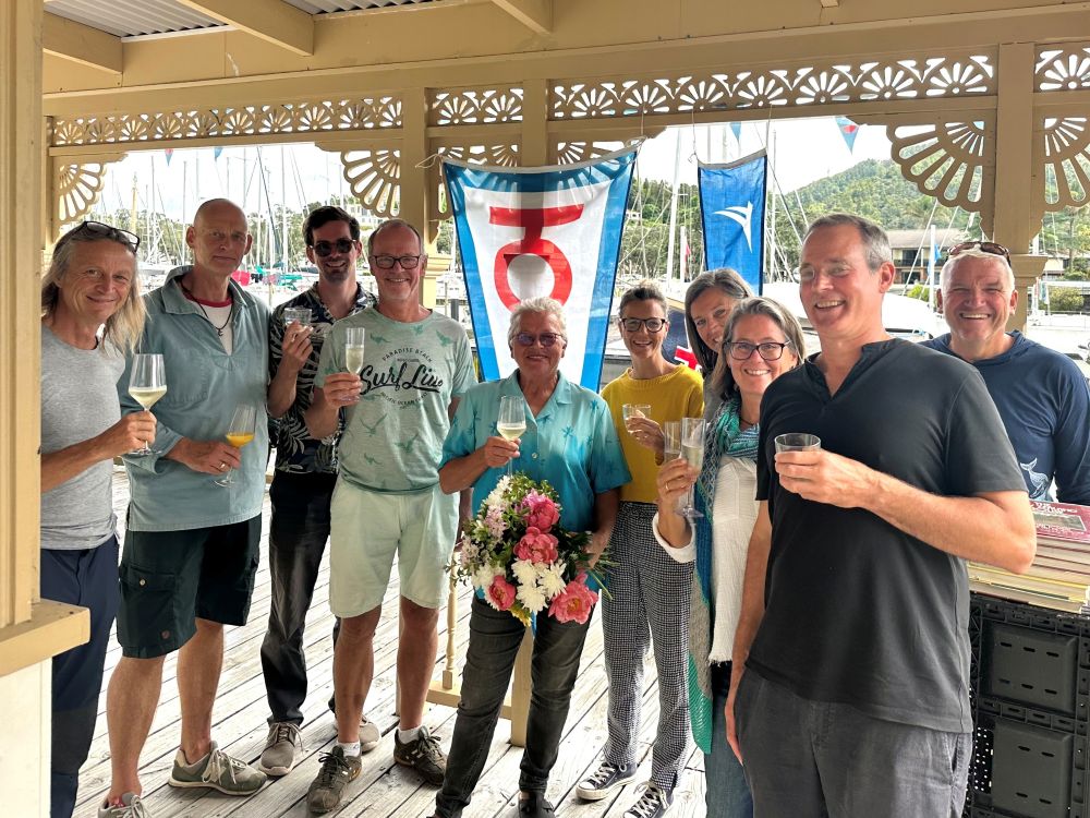 Susanne Huber-Curphey war aus Neuseeland zugeschaltet und begoss anschließend mit den Crews vor Ort ihren vierten Trans-Ocean Preis