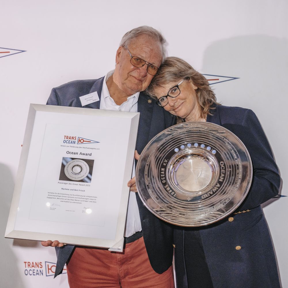 Als danach der Ocean Award vergeben wurde, wurde es in Cuxhaven emotional. Vorstand und Geschäftsstelle waren plötzlich mit neongelben Mützen zu sehen. Sie sind das Erkennungszeichen von Marlene und Bert Frisch in ihren informativen TO Blauwasser Micro-Seminaren. Seit vielen Jahren engagieren sie sich ehrenamtlich für den Verein, stehen mit Rat und Tat den Mitgliedern zur Seite, notfalls auch nachts. Während Corona haben sie aus den Präsenzseminaren die einzigartigen online Micro-Seminare gemacht. Hier vermitteln sie mit viel Herzblut und Expertise relevantes Fachwissen rund um das Hochseesegeln. Die TO Blauwasser Micro-Seminare sind kostenlos und offen für jeden (auch nicht TO-Mitglieder). Gerne kommen da an einem Abend viele hundert Teilnehmer zusammen und bei besonderen Themen kann es auch vierstellig werden.