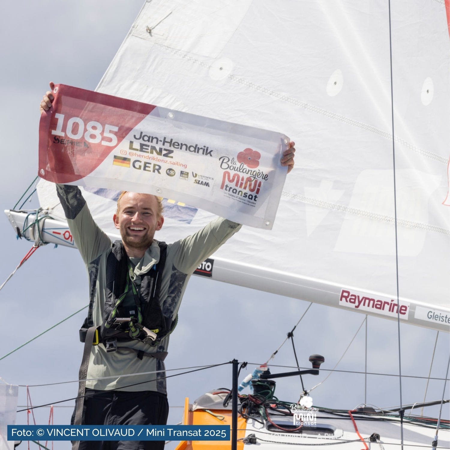 Nach 15 Tagen, 23 Stunden und 17 Minuten allein auf dem Atlantik hat der deutsche Einhand- und Regattasegler Jan-Hendrik Lenz am 10. November 2025 die Ziellinie der Mini Transat 2025 in Saint-François (Guadeloupe) überquert. Lenz, der die erste Etappe noch auf einem starken dritten Platz beendet hatte, war nach deren Annullierung ohne Wertung in die zweite Hälfte des Rennens gestartet. Mit seiner Monoka belegte der Düsseldorfer in der Gruppe der Serienboote den 14. Platz – nach einer Etappe, die ihn physisch wie mental bis an seine Grenzen führte.