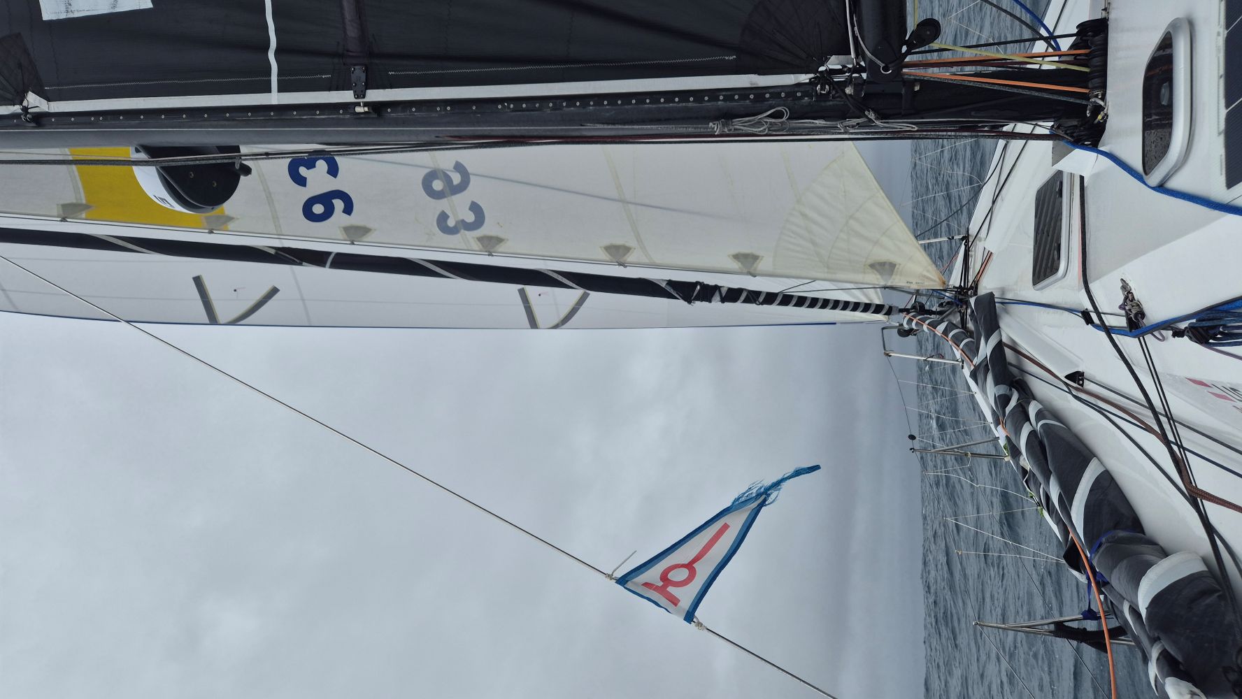 Sofort passten sie ihren Kurs an und wechselten in den Sicherheitsmodus mit dem Ziel bei leichteren Winden den Schaden zu beheben. Doch schnell kristallisierte sich heraus, dass Warten keine Option war und der Schaden zügig behoben werden musste, um größere Auswirkungen zu verhindern. Nach einer kurzen Risikoanalyse legten sie Wilson vor den Wind und Jade stieg mitten in der Nacht unter extremen Bedingungen hoch in den Mast. Mit viel Kraft, Konzentration und bestimmt auch einigen blauen Fleckengelang es ihm tatsächlich das Problem zu beheben und das Vorstag wieder ordnungsgemäß zu befestigen.