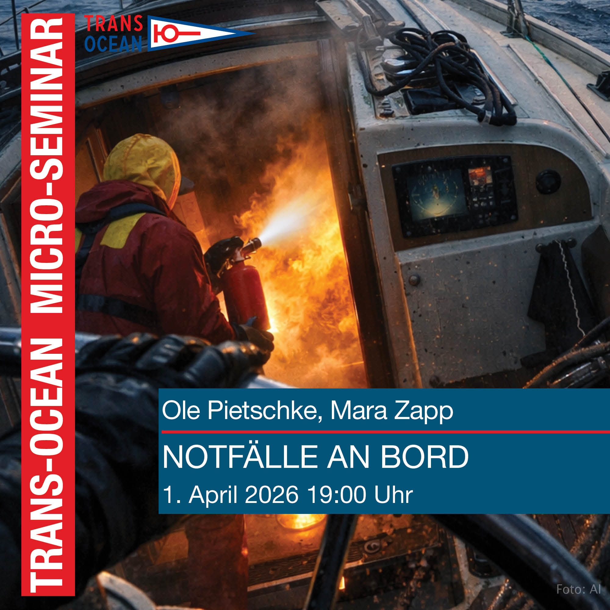 Häufig entscheiden die ersten Reaktionen, ob ein Problem zum Notfall oder ein Notfall zur Katastrophe an Bord wird. Im Micro-Seminar am Mittwoch, 1. April 2026, helfen wir ab 19:00 Uhr das Mindset für überlegte und schnelle Entscheidungen zu setzen: Was tun bei Feuer, Wassereinbruch, Strandung? Wie reagieren, wenn plötzlich alles bei Person im Wasser gleichzeitig passieren müsste und man allein ist?
