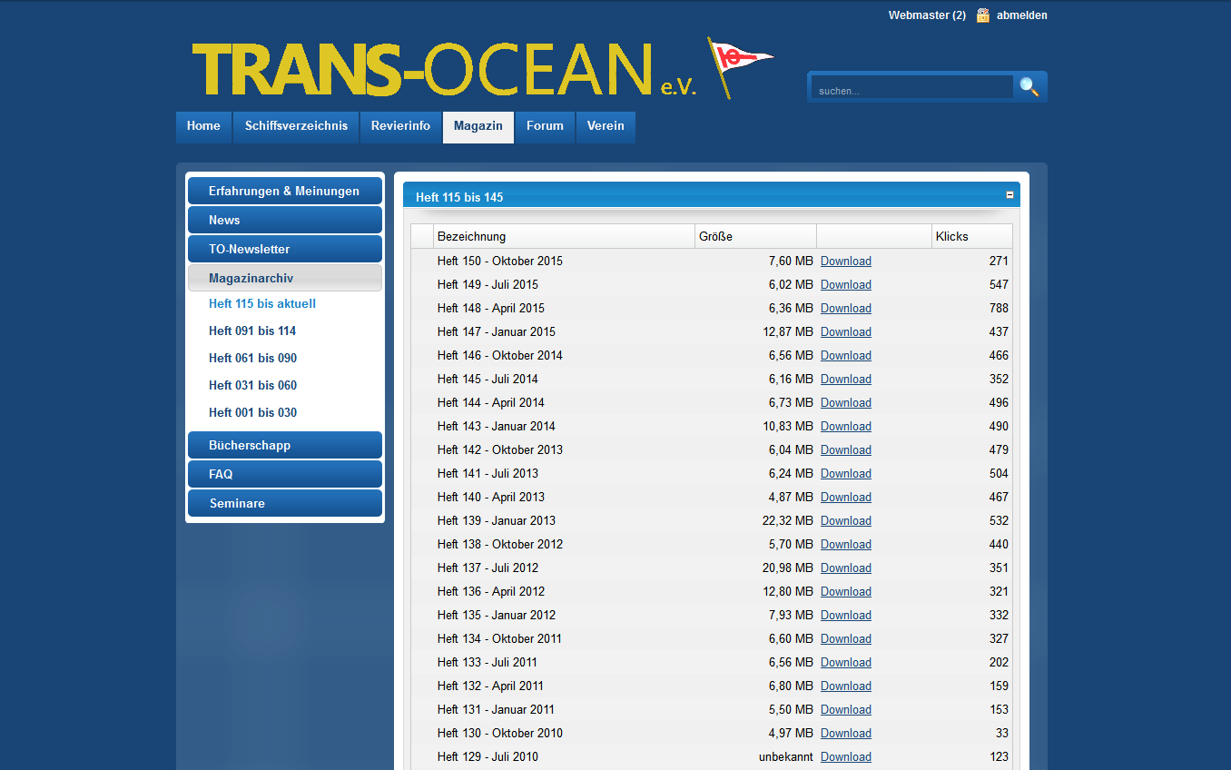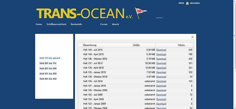 Der Shop unter „Verein“ Menüpunkt „TO – Shop“ steht nicht zur Verfügung. Bestellungen können aber problemlos über Info@Trans-Ocean.org abgewickelt werden.