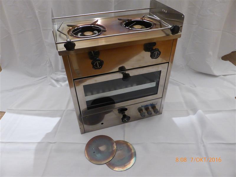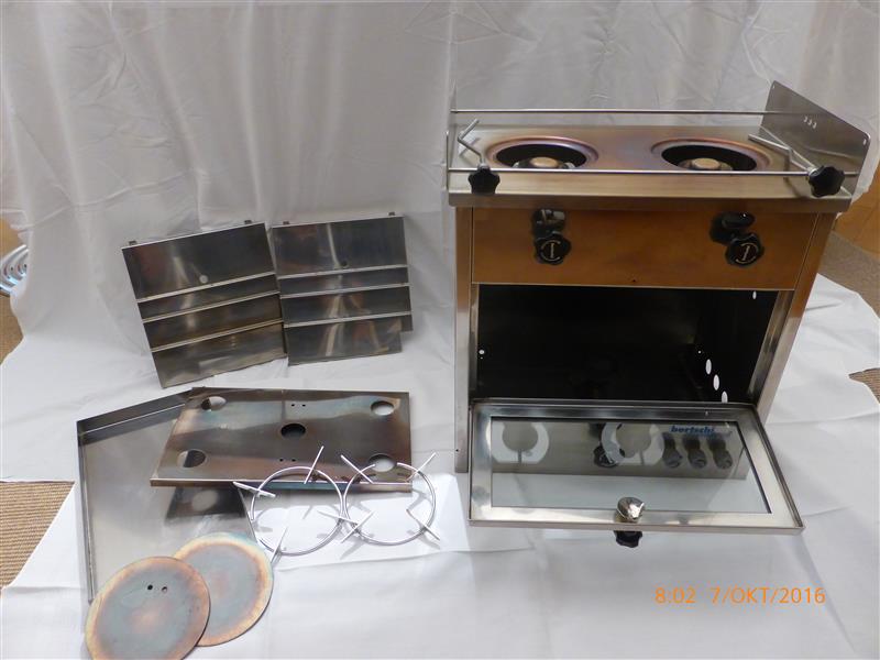Der Herd wurde neu gekauft und nur ein paar Mal probeweise zum Backen benutzt und war auf dem Schiff nie eingebaut.