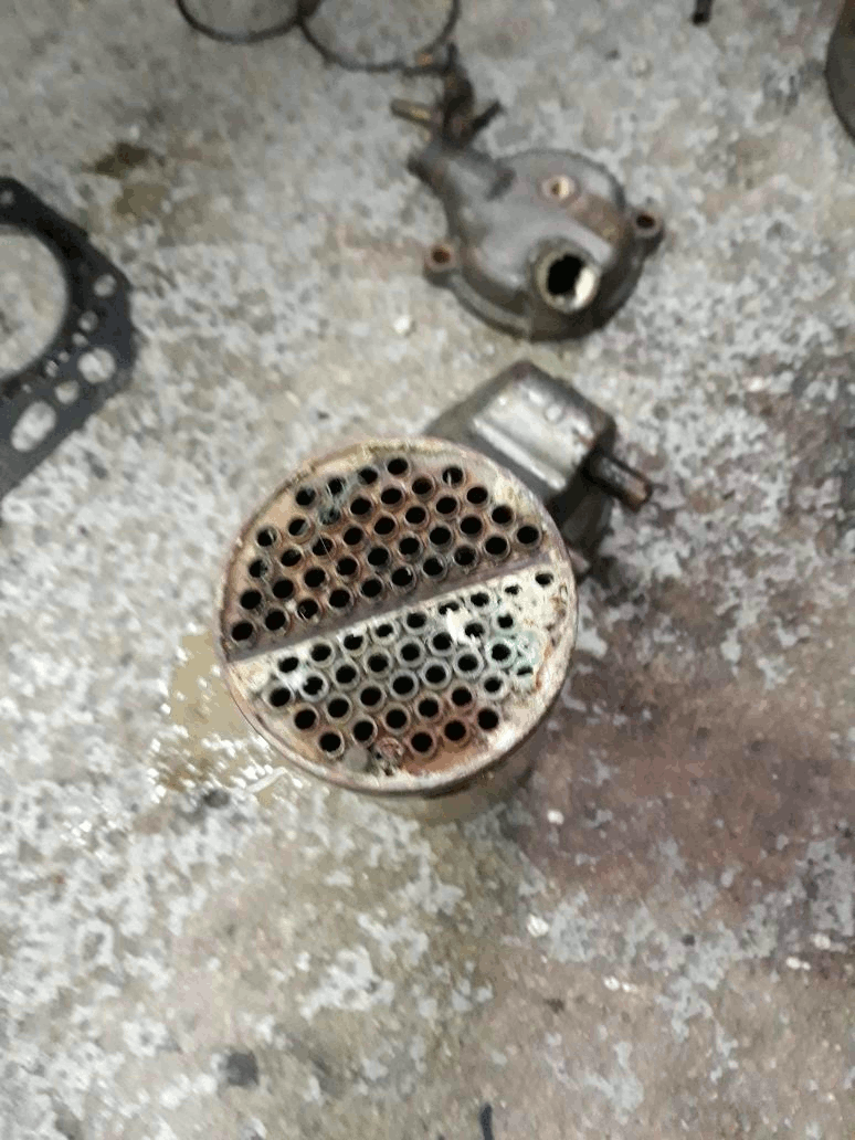 Ich habe eine alte Yacht in Montenegro gekauft und jetzt einen defekten Öl Kühler (Oil cooler)