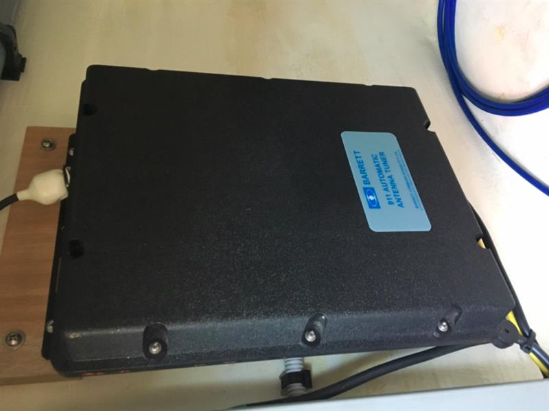 Es ist noch auf dem Schiff montiert, das gerade in den USA liegt. Wer das Gerät hier übernehmen möchte, bekommt auch gleich die lange Peitschen-Antenne dazu. Wer das Gerät in Deutschland haben möchte, für den bringen wir es Ende Juni mit nach Hause. Dazu gehört auch ein Barrett 911 Automatic Antennen Tuner und ein Kiss-SSB Ground Plane (KISS-SSB TM).