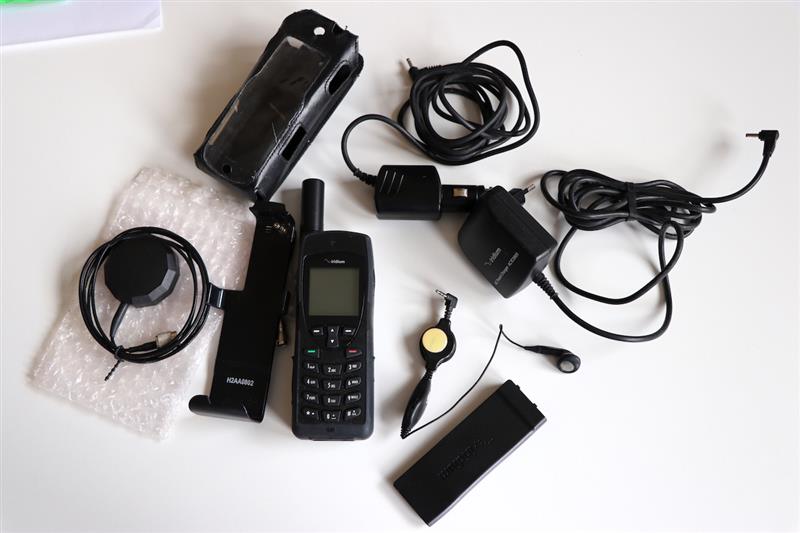 Das Telefon ist in sehr gutem Zustand. Nur die Lederschutzhülle weist ein paar Abnutzungserscheinungen auf. Es wird mitsamt des kompletten üblichen Zubehörs und der Originalverpackung verkauft. Außerdem ist ein zweiter Akku dabei. Den hatten wir gekauft, falls wir mal mit dem Telefon in die Rettungsinsel müssen.