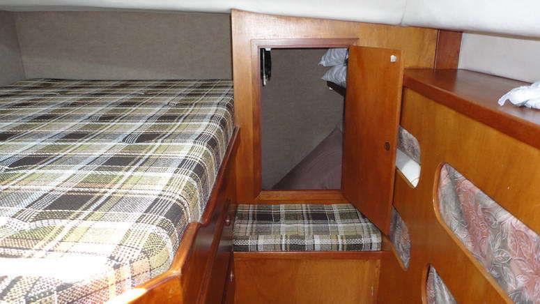 Verfügung, oder eine sogenannte Hundekoje (hat nichts direkt mit einem Hund zu tun, ich nehme an man nennt die Koje so, da sie recht kuschelig ist und die Beine bis ca. Wadenlänge durch ein Schott geschoben werden. Erinnert irgendwie an eine Hundehütte. Auf dem Kat ist noch nie ein Tier mitgefahren, also auch kein Problem für Menschen mit Tierhaar- oder speziell Katzenallergie.) Es ist ein Nichtraucherboot sofern, dass Rauchen nur im Aussenbereich möglich ist.