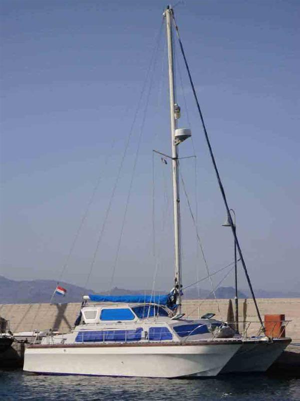 mit meinem Katamaran Typ CATALAC 34 bin ich seit 2015, zuletzt auf Flüssen und Kanälen,  unterwegs. Der Kat ist Baujahr 1984 und in sehr gutem Zustand. Der Mast von Kemp ist gelegt, das stehende Gut, Ober- und Unterwanten und die beiden Achterstage sind entfernt, da sie angesichts des Alters vorsichtshalber ersetzt werden müssen. Rollreffanlage Rotostay, z.Zt. im Mast gestaut. Grossbaum und Spinnakerbaum sind natürlich vorhanden aber auch demontiert und eingelagert. Die Segel sind nutzbar,  z.B. für eine Überführung, ich würde sie aber vor einer Langfahr ersetzen. Die Schoten und Fallen sind ok, teilweise neu bzw. wenig gebraucht. Es ist sehr viel Tauwerk, teils neu, vorhaden und auch neue Festmacher in genügender Stärke und mehr als ausreichender Länge gehören zum Inventar.