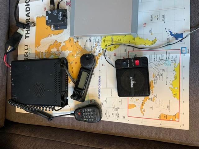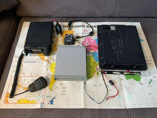 Yaesu FT857, Antennetuner, Pactor Modem, Lautsprecher und Kabel. Also eigentlich komplett bis auf die Antenne.