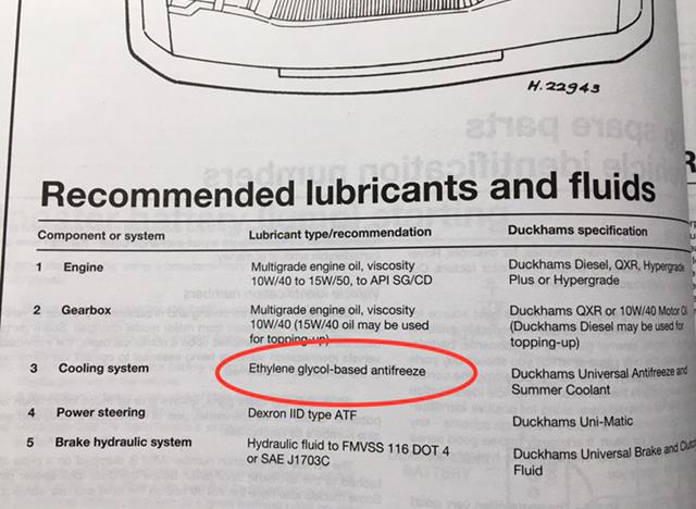 In der Anleitung vom Volvo Penta MD 22 L steht, dass man anstelle von 50:50 mit Frostschutzmittel und Wasser auch die Spezialflüssigkeit von Volvo nutzen kann und davon 1lt zum Wasser dazu gibt.