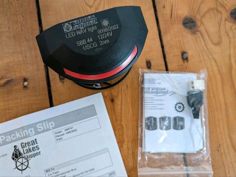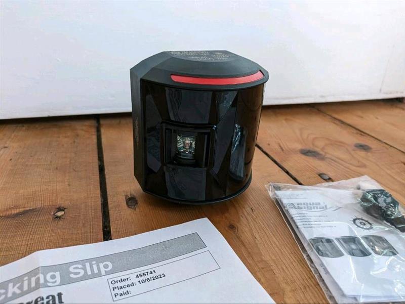 wir haben noch eine neue rote LED Positionsleuchte von Aqua Signal rumliegen. Komplett neu und in ungeöffneter OVP (auf den Fotos ist dasselbe Modell, jedoch eine andere, ausgepackte Leuchte zu sehen).