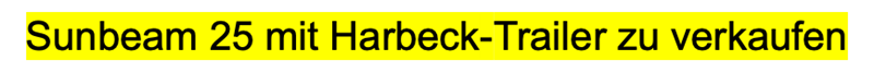 Sunbeam 25 mit Harbeck-Trailer zu verkaufen