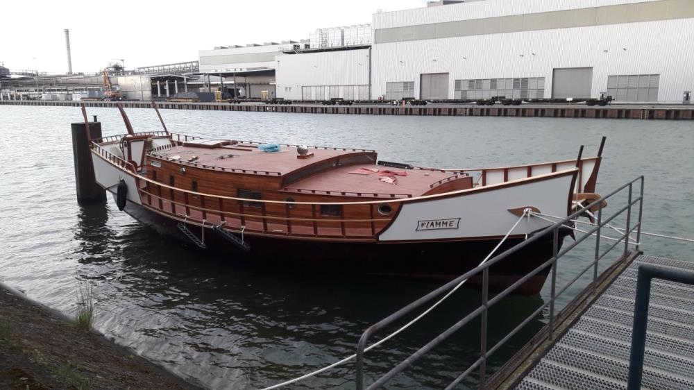 Dschunke, selbst gebaut in Holz/Epoxy Kompositbauweise nach den Plänen von Dimitri Leforestier. Schiff wurde vor kurzem zu Wasser gelassen.